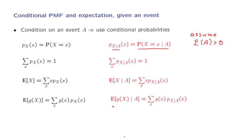 To conclude, there is nothing really different when we deal with conditional PMFs, conditional expectations, and conditional variances.