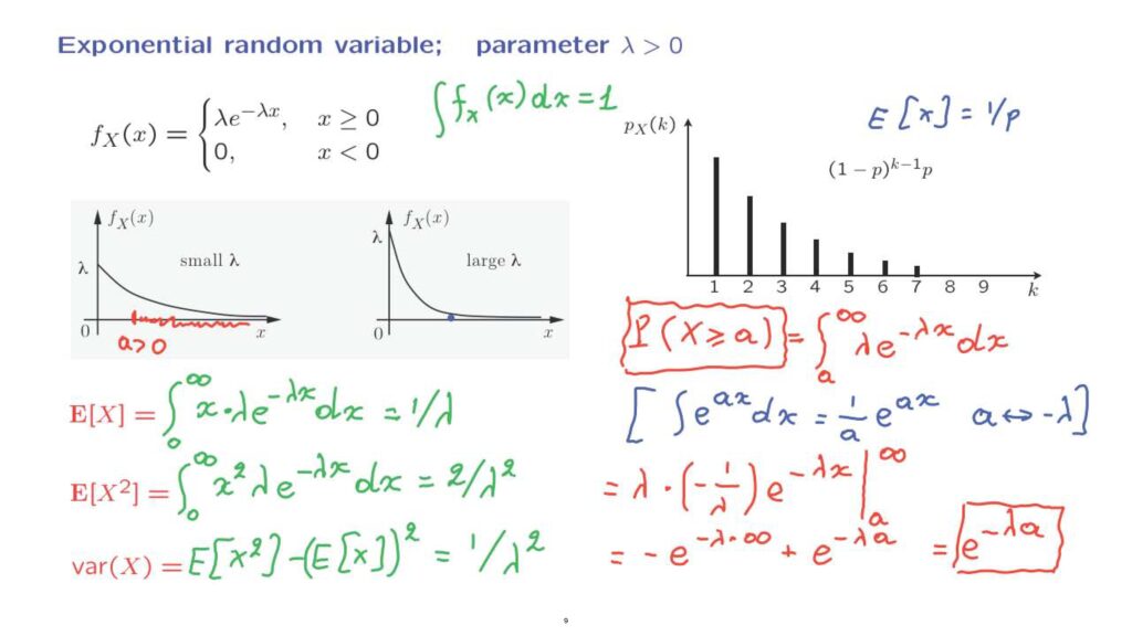 Another observation to make is that the shape of this exponential PDF is quite similar to the shape of the geometric PDF that we have seen before, the only difference being that here we have a discrete distribution, but here we have a continuous analog of that distribution.