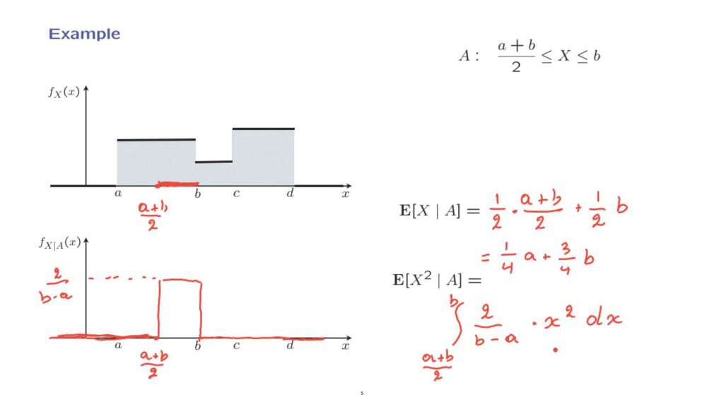 Suppose that we condition on the event that x lies between a plus b over 2, which is here, and b.