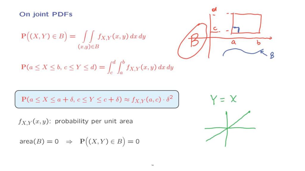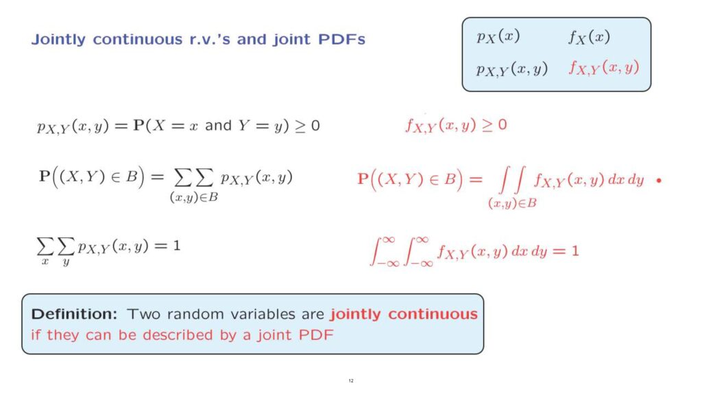We also need to model the relation between the two random variables, and this is done through a joint PDF, which is the continuous analog of the joint PMF.