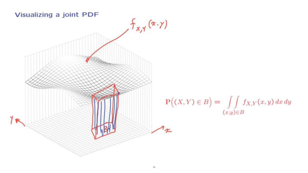This joint PDF is higher at some places and lower at others, indicating that certain regions of the x,y plane are more likely than others.