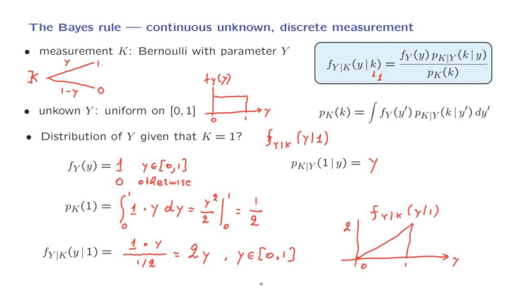 We now look at an application of the Bayes rule that’s involves a continuous unknown random variable, which we try to estimate based on a discrete measurement.
