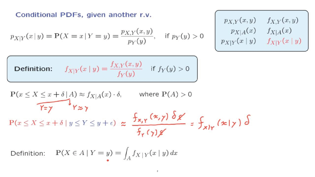 And similarly, the conditional PDF is used to calculate the conditional probability of a small interval given the conditioning event.
