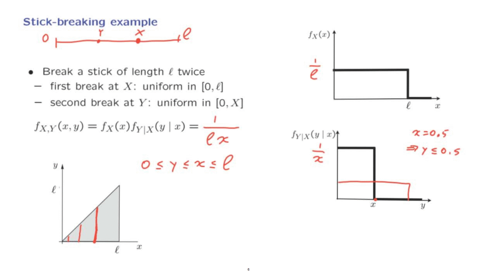 What does this assumption mean? It means that if the first break was at some particular value, x, then the random variable Y has a conditional distribution, which is uniform over the interval from 0 to x.