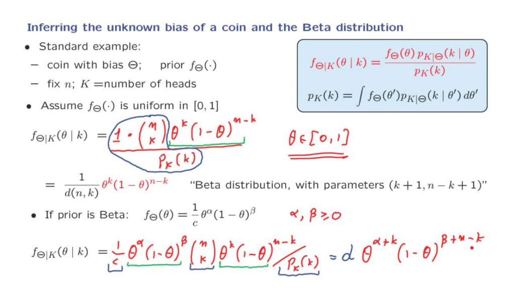 We will now go through an example that involves a continuous unknown parameter, the unknown bias of a coin and discrete observations, namely, the number of heads that are observed in a sequence of coin flips.