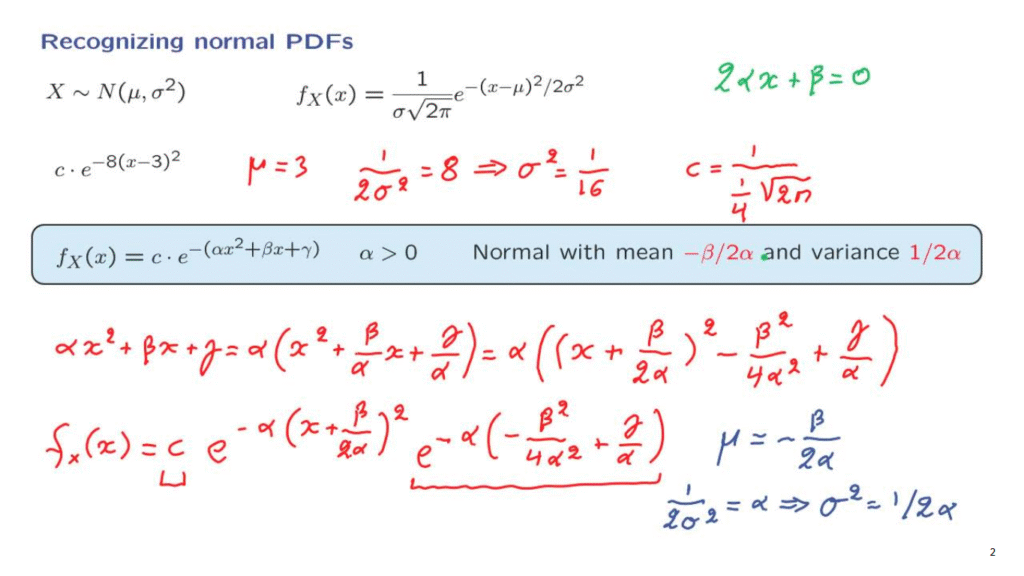 Negative exponential of a quadratic function of x is always a normal PDF.